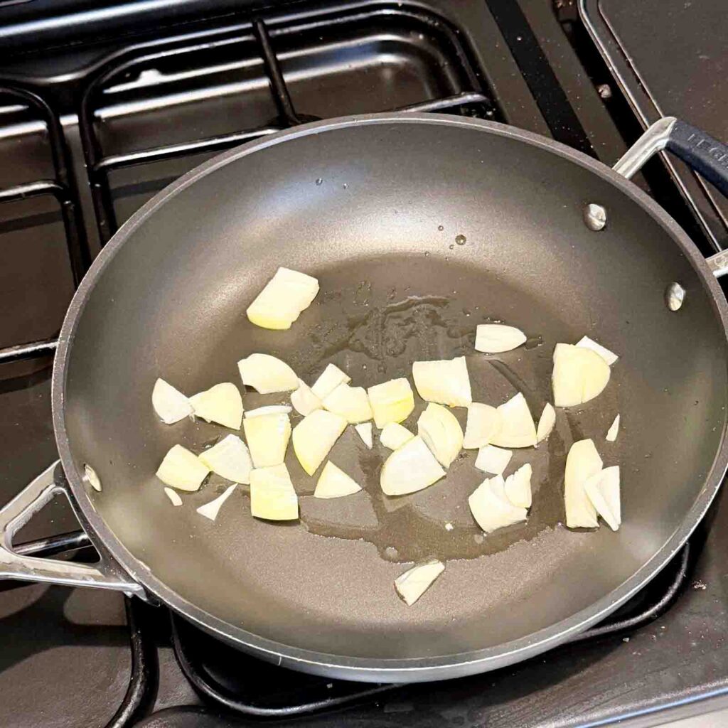 - Add the garlic and cook for 1 minute.